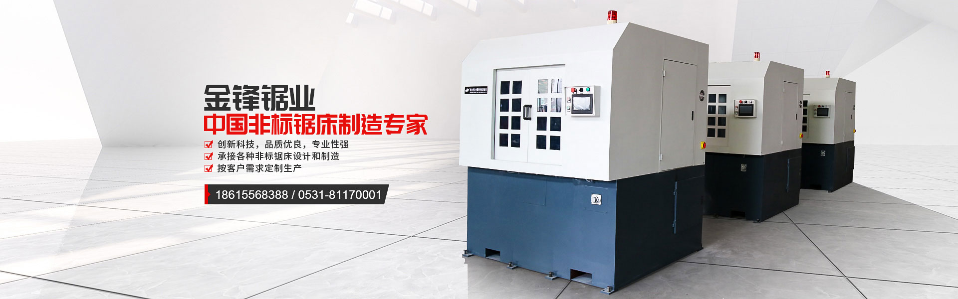 濟(jì)南北方金鋒鋸業(yè)是專業(yè)生產(chǎn)帶鋸床、帶鋸條20年的非標(biāo)鋸床定制廠家,定制鋸床案例豐富。產(chǎn)品涵蓋數(shù)控鋸床、立式鋸床、臥式鋸床、角度鋸床、雙鋸條帶鋸床、圓鋸機(jī)等,遠(yuǎn)銷海內(nèi)外,若您有相關(guān)鋸切需求,歡迎來(lái)電咨詢!