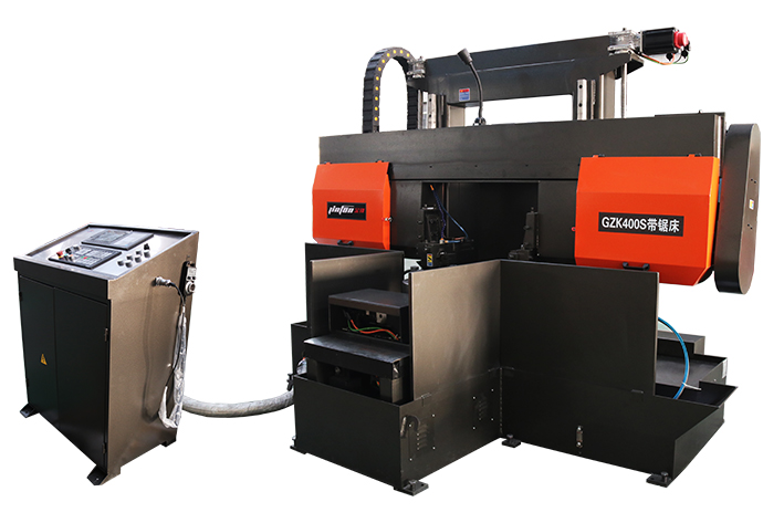 GZK400S鋸床專為鋸切中、低碳鋼及304不銹鋼等材料而設計,集多功能、高效率與經濟性于一體。這款帶鋸床的核心特點在于切削效率高、節能省電、鋸口窄省材料、操作維護簡便。鋸床采用堅固的雙立柱龍門臥式結構,確保了極高的剛性及穩定性。鋸條可以實現90°自動旋轉功能,可輕松在垂直鋸切與水平鋸切模式間快速切換。配合可360°旋轉的工作臺,使工件定位更加靈活便捷。帶鋸床采用參數化數控系統,精確控制鋸切速度、進給力等核心參數,大幅提升了鋸切精度、重復性及整體效率。總而言之,GZK400S平豎兩用帶鋸床是各類金屬加工車間進行批量下料的理想選擇。
